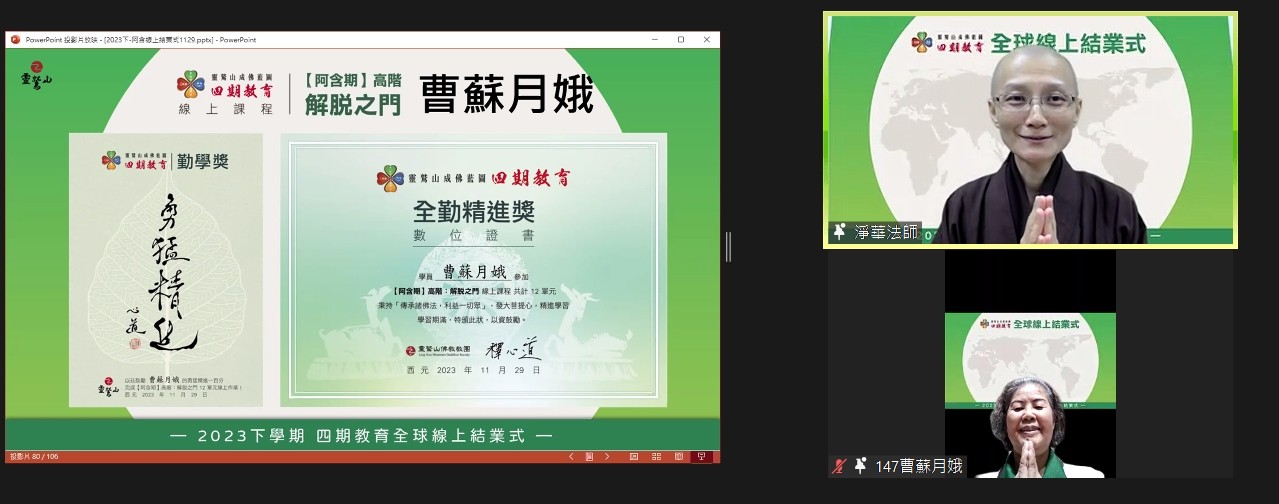 “靈鷲山四期教育不論入門深淺,都能找到學習入口,若是真心向佛,把基礎打好之後,便了解這條路是對的。”